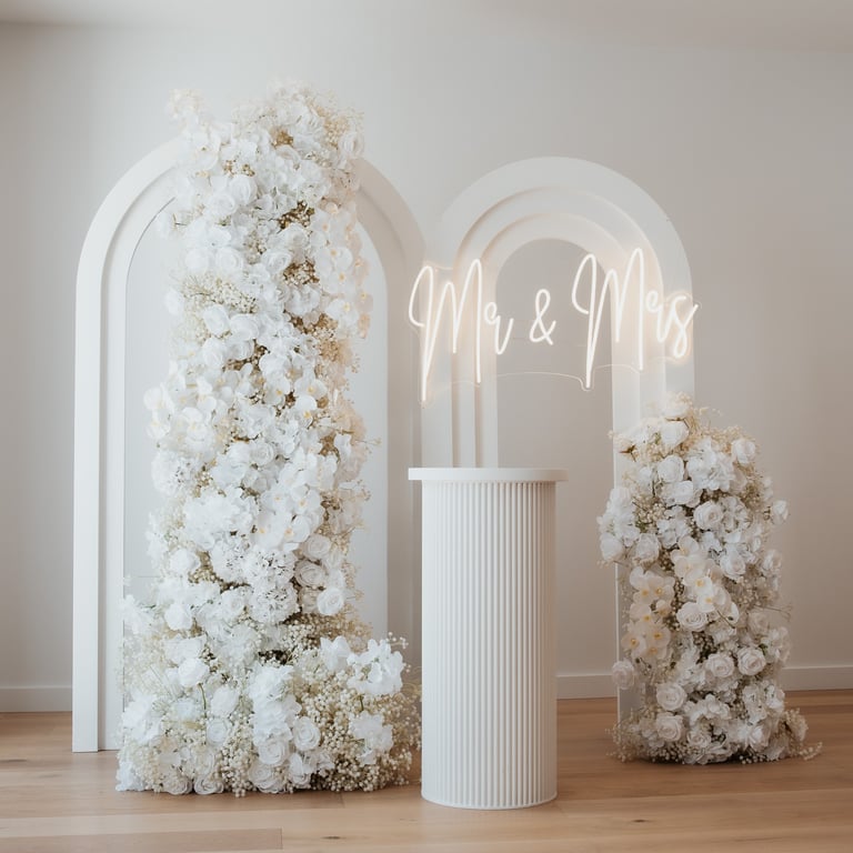 Add some floor vinyl, additional candles, extra backdrops or neon sign for that extra touch! *Additional cost *